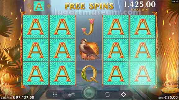 Itu tampak seperti tempat ia akan menjamu tamu atau sekadar bersantai. Itu membuat perubahan yang disambut baik dari kuil-kuil gelap, gua-gua, dan adegan obor yang biasanya kita dapatkan di latar Mesir Kuno. Itu sangat intim, tetapi manfaatkan itu sebaik-baiknya, karena itu adalah aspek asli terakhir yang akan Anda temukan di Papa Jackpot slot Book of Atem 77.